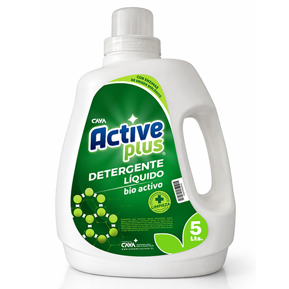 El Detergente Líquido Active Plus Bio Activo 5 Litros en botella está formulado con agentes bioactivos que potencian la eliminación de manchas, grasa y suciedad difícil, entregando una limpieza profunda y eficaz en cada lavado.